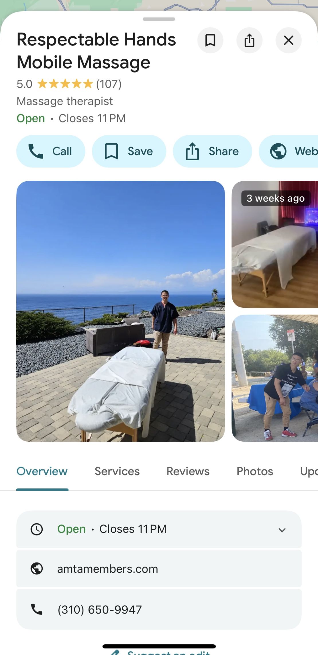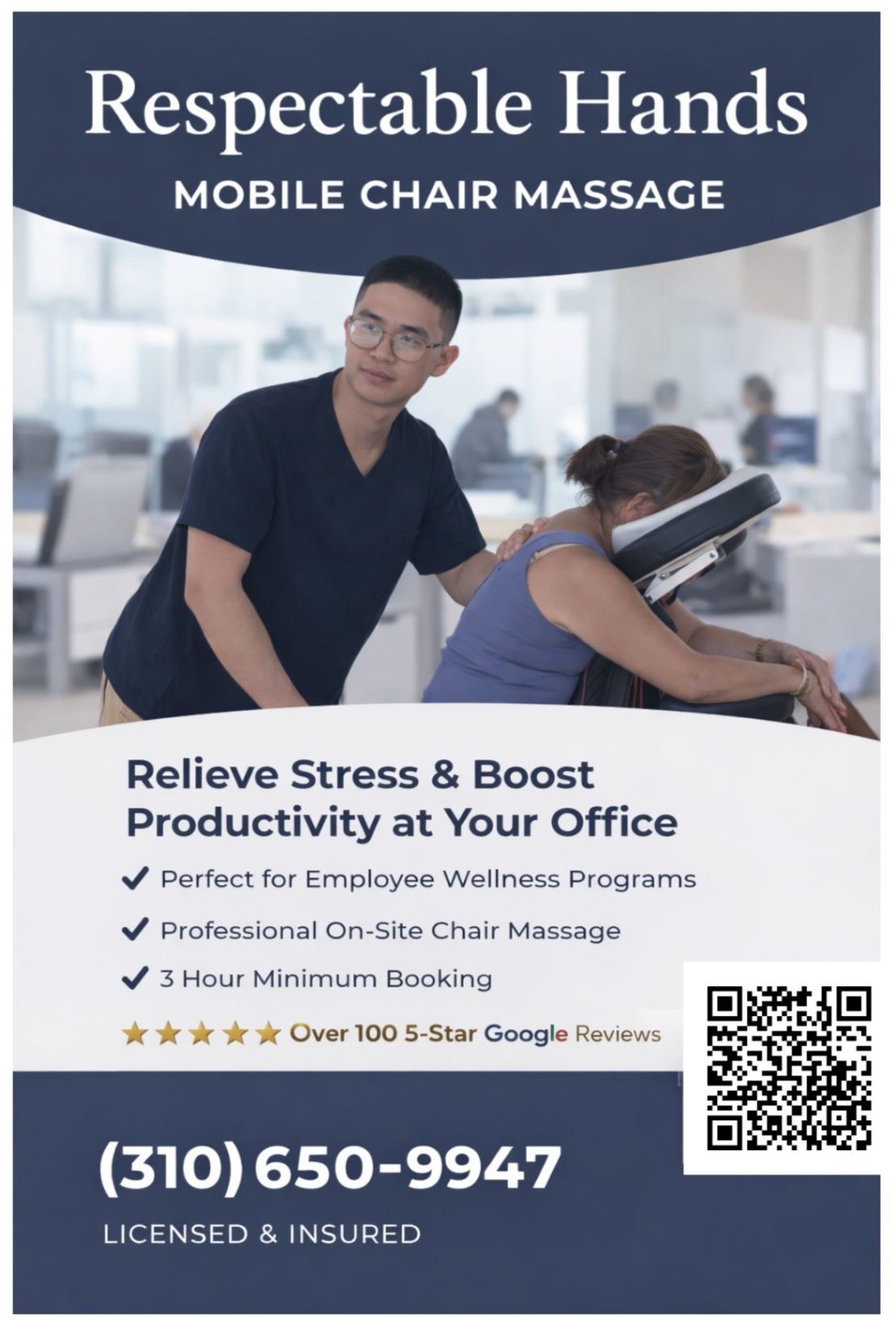My Google business is called "Respectable Hands Mobile Massage & Chair Services", with over 100 5-Star Google Reviews!